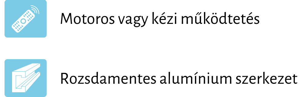 Motorosan dönthető lamellái segítségével egyszerűen szabályozható a fény, az árnyékolás és a szellőzés: nyitott állapotban lehetővé teszik a természetes légkondicionálást, zárt állásban védelmet biztosítanak az eső, vagy a túlzó napsütéssel szemben, az elforgatott lamellák pedig a védelem mellett szabad levegőáramlást biztosítanak.