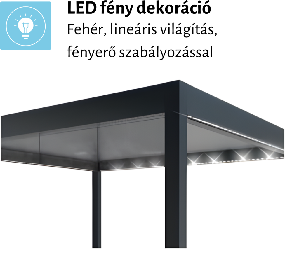 - a pergola teteje mozgatható, kamrás alumínium lamellákból áll